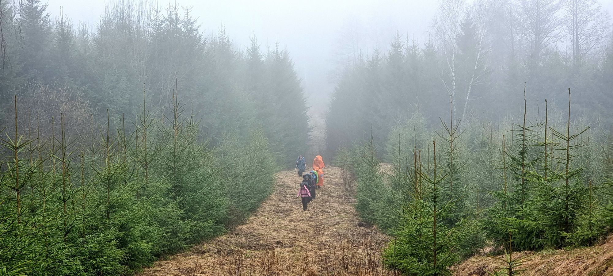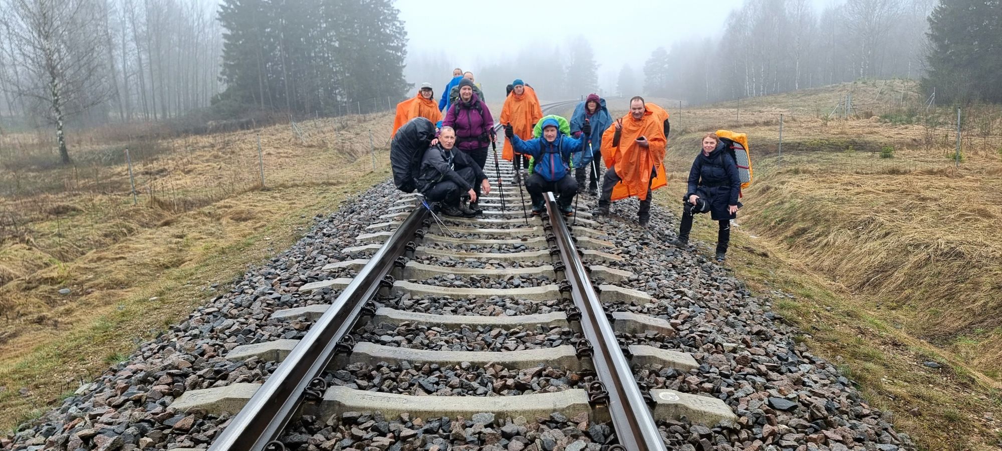 Netrukus tarp aptvarų išsiraitę kertame „Rail Baltica“ vėžę. Dabar šiuo geležinkeliu galima iki pat Krokuvos nuvažiuoti, tiesa pasienyje, Lenkijoje, reikėtų persėsti į vietinį traukinį. Toliau šoliuojame per miškus, klonius ir laukus, stebėdami dulksnos purškiamą aplinką. Rūke skęstantys kalvoti laukai tarsi pasiryškina savo „makiažą“ tarp reljefo įlinkių. Kraštovaizdis išties įspūdingas, nors visa diena apgaubta pilka rūko marška. Staiga pats save nusistebinu. Norėdamas pasitikrinti telefono programėlėje, kur esame, ir kas laukia priekyje, suprantu, kad reikalai pakibę, nusprendžiu perkrauti telefoną. Opa ir paprašo kodo, kuris yra naujas pakeitus mobilų operatorių. O naujas kodas reiškia, kad kodas yra namuose. Ir keista, ir gėda, kad žemėlapio nebeėmiau, o be telefono pagalbos jaučiuosi, kaip musė į barščius įmesta. Ta nervinga panikos žiedais apipinta valandėlė erzino kaip reta. Asta vis bando padėti su savo telefonu, vistiek nenuslopina mano vaikiško susierzinimo. Po lengvo susierzinimo po truputį grįžtu į realybę. Į priekį paleidę Remigijų, sužinome, kad jis jau laukia prie Galadusio ežero pradžios, Lenkijos teritorijoje prie pavėsinės. Prisiviję ir apžiūrėję galimą nakvynės vietą, nusprendžiame, kad dar tikrai galime paeiti, bus rytoj mažiau…
