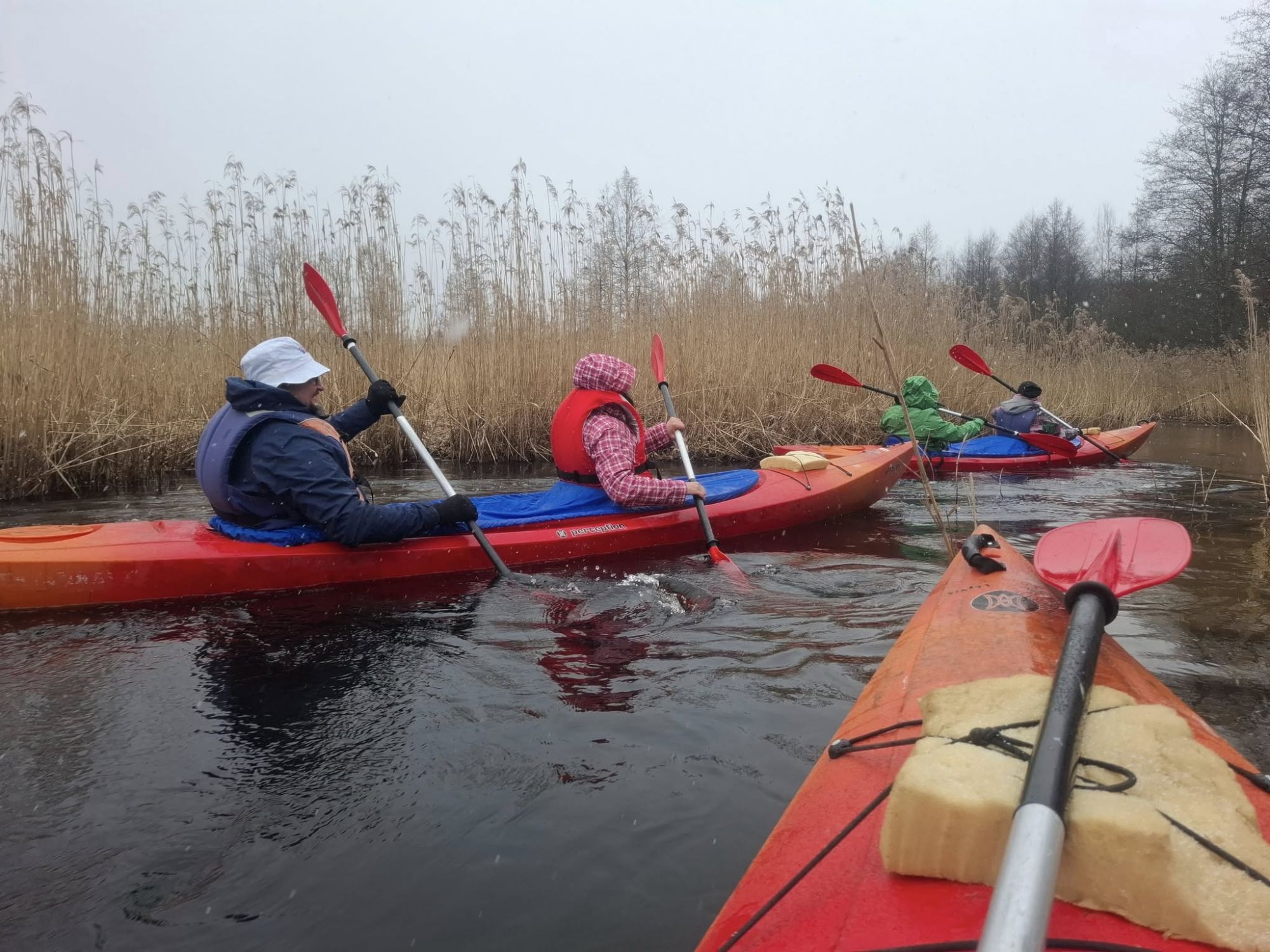 Vėlyvą penktadienio vakarą, po Tėvynės pakraščiais žygio pristatymo, kupini šilčiausių emocijų, skubame į Guntauninkus. Ten mūsų laukia šeštadieninis plaukimas Kiauna. Orų prognozės stebuklų nežada, po tokių šiltų dienų sugrįžta lengvas sniegelis su minusine nakties ir ryto temperatūra. Be abejo, kad orai mums nekelia rūpesčių, ypač, kad per tą pusdienį pasikeitė beveik visi keturi metų laikai.