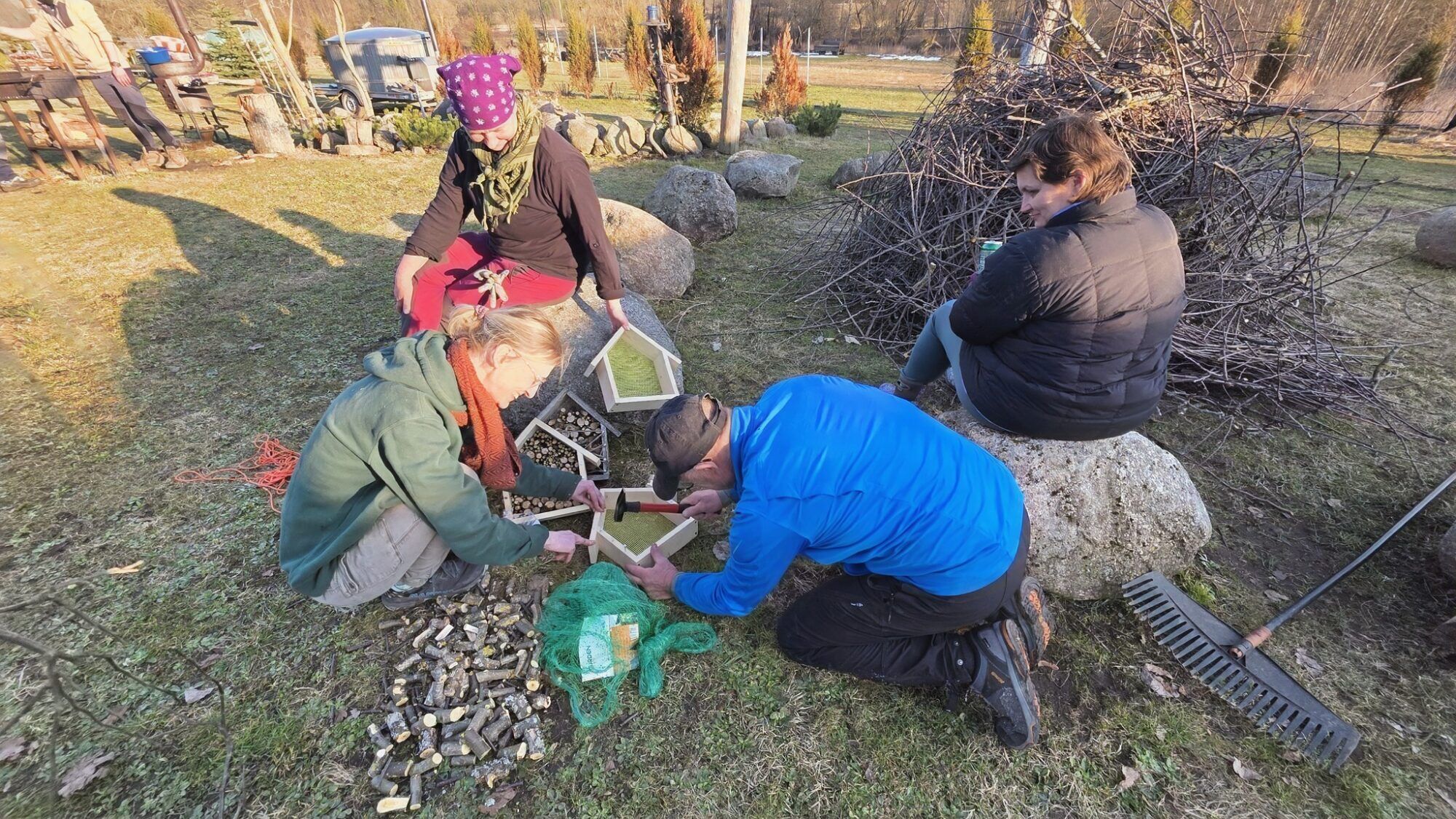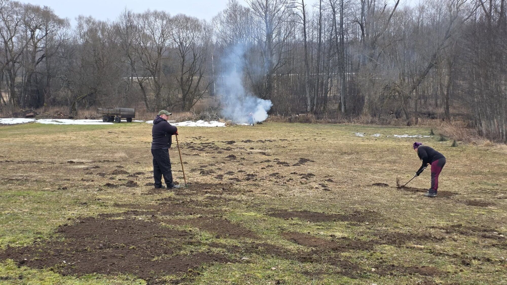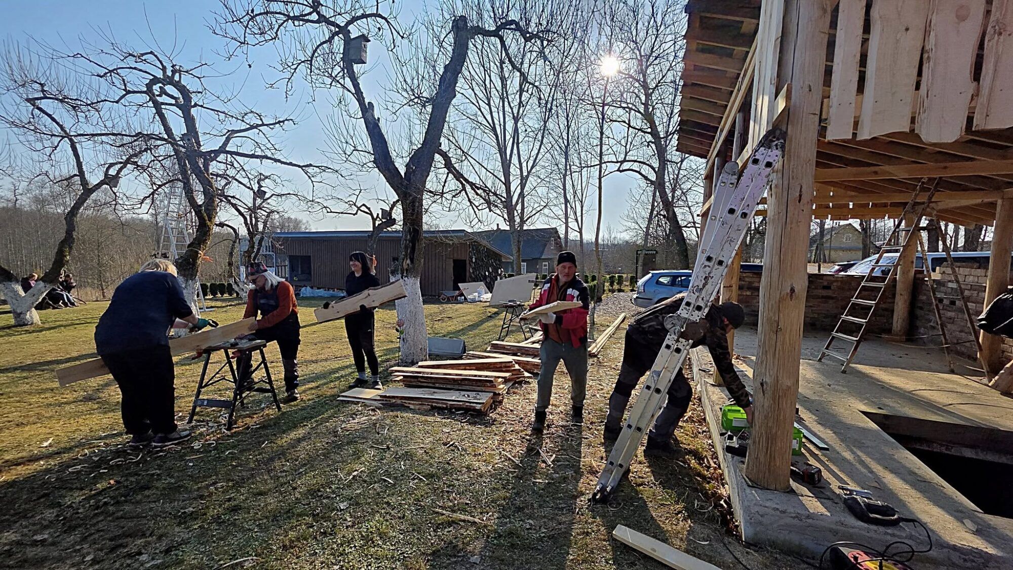 - Preliminarūs darbai: obelų kamienų balinimas, obelų genėjimas, kurmiariausių lyginimas, gatavų malkų pervežimas ir sukrovimas į KK malkinę, KK namų teritorijos apgrėbaliojimas ir pernykščių lapų kompostavimas, inkilų paukšteliams gamyba ir kabinimas, pavėsinės sutvirtinimo ir apkalimo darbai, KK namų vandentiekio sutvarkymo darbai, plytų išvežimas iš pavėsinės teritorijos ir sukrovimas prie ūkinuko, vėjo nugrautos skulptūros pastatymas ir palaiminimas bei apšlakštymas, apšvietimo instaliacijų sutvarkymas ir kitų elektros darbų atlikimas, šakų sudeginimas.