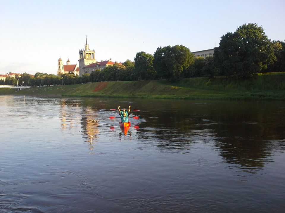 Pagaliau pasiekėme antrą punktą – Pabradę. KKPK pasitiko su plakatais ir džiaugsmo šūksniais. Ech, tas neapsakomas jausmas kai po kojomis jauti žemę… Pasiekusi antrą punktą patikėjau, kad gal visgi įmanoma šį atstumą įveikti iki galo. Bet lengva tikrai nebus… Trumpai užkandus ir atstačius energijos kiekį buvom siunčiami į antrą reabilitacijos etapą… Profesionalus masažas po nuplauktų 77 km – tikra palaima ir itin netikėta staigmena. Po reabilitacijos lyg į pirmą startą su šypsenomis sušokame į baidares ir vėl… ta nesibaigianti upė… trečioje atkarpoje galva tampa tuščia kaip puodynė. Rūpesčiai pamiršti, o galvoje vienintelis tikslas – suspėti. Pagaliau, likus maždaug valandai iki užbrėžtos ribos pasiekėme trečią punktą – Nemenčinę. „Plauksi toliau?“ paklausė KKPK. „Plauksiu“ atsakiau ir kritau ant žemės kryžium… sakė gulėjau trumpai, bet man atrodė, kad spėjau devynis sapnus susapnuoti.
